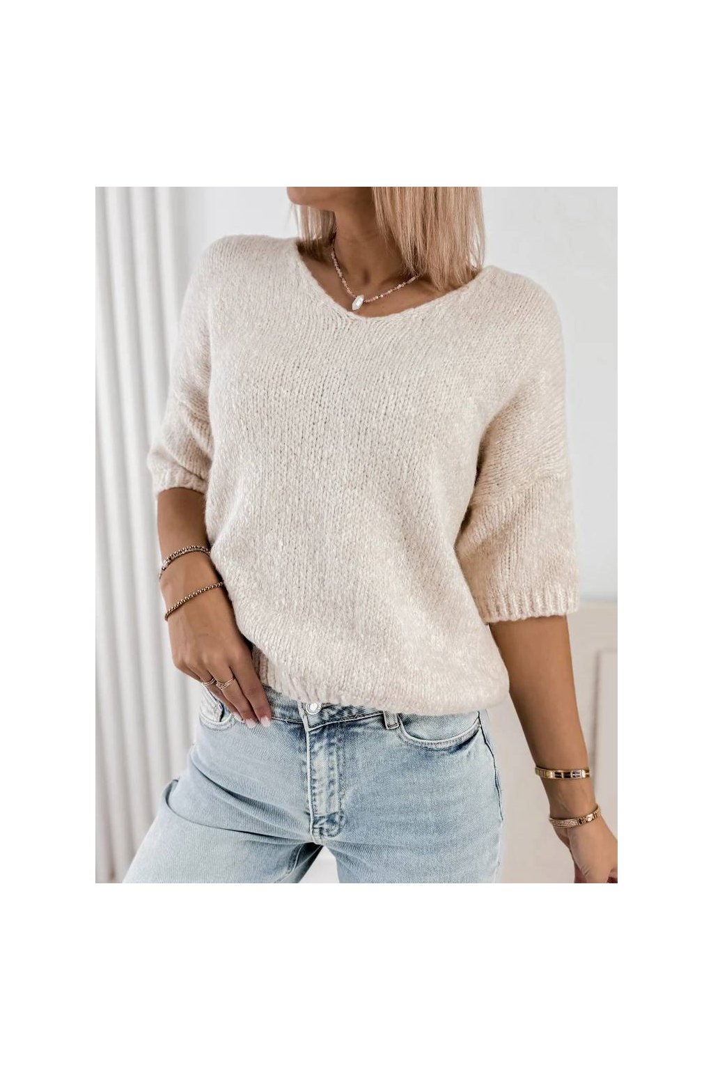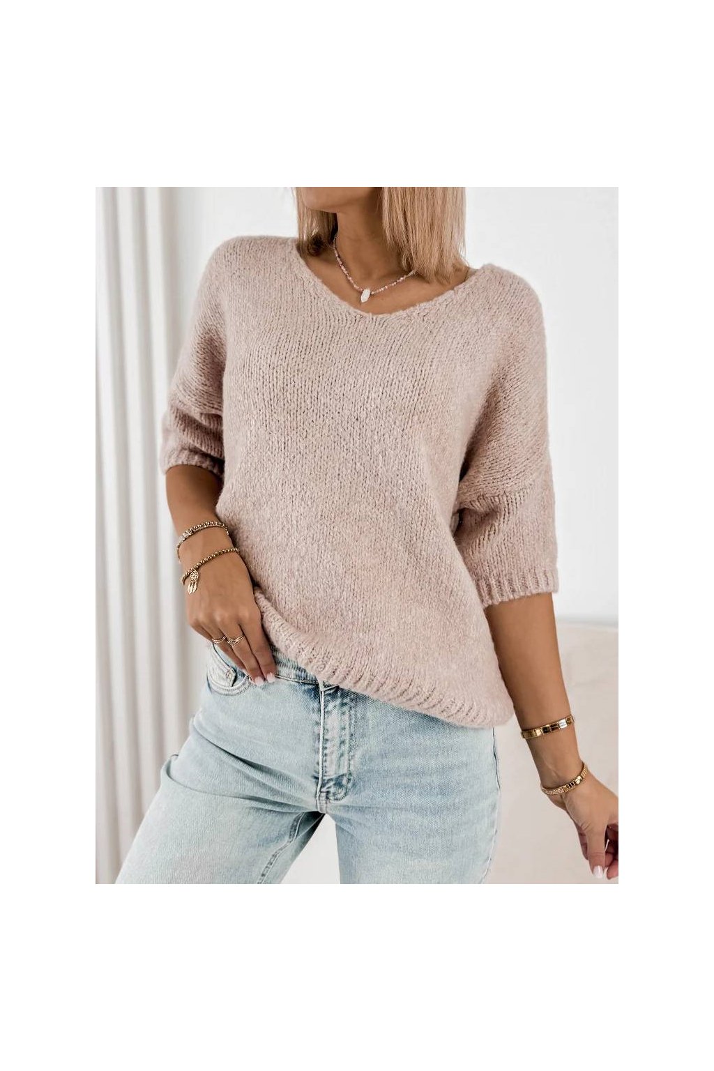 Stylový a mimořádně pohodlný dámský pletený svetr volného střihu, který zaujme svou jemnou strukturou, měkkostí a nadčasovým designem. Díky výstřihu do V krásně zvýrazní dekolt a dodá siluetě lehkost.