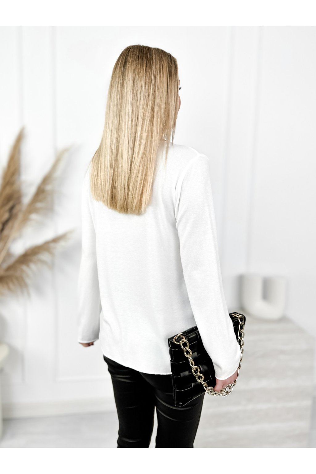 Díky výstřihu do V působí ženským a zeštíhlujícím dojmem a skvěle se hodí jak ke kalhotám, tak k sukním.