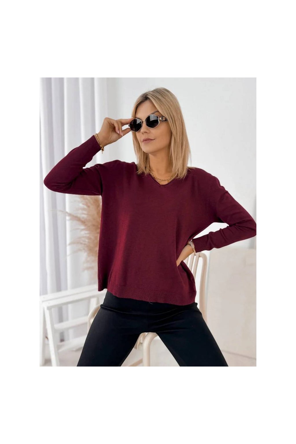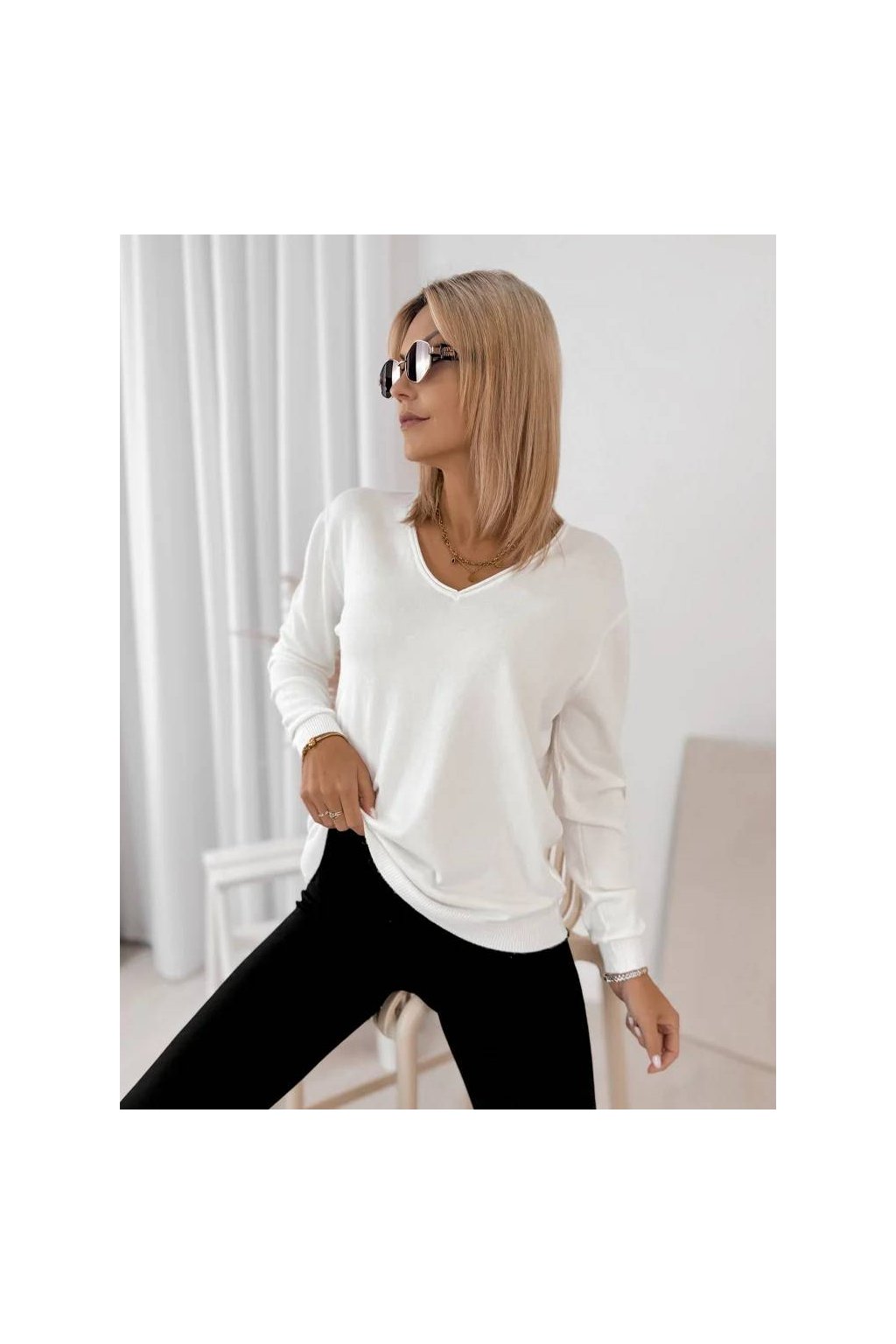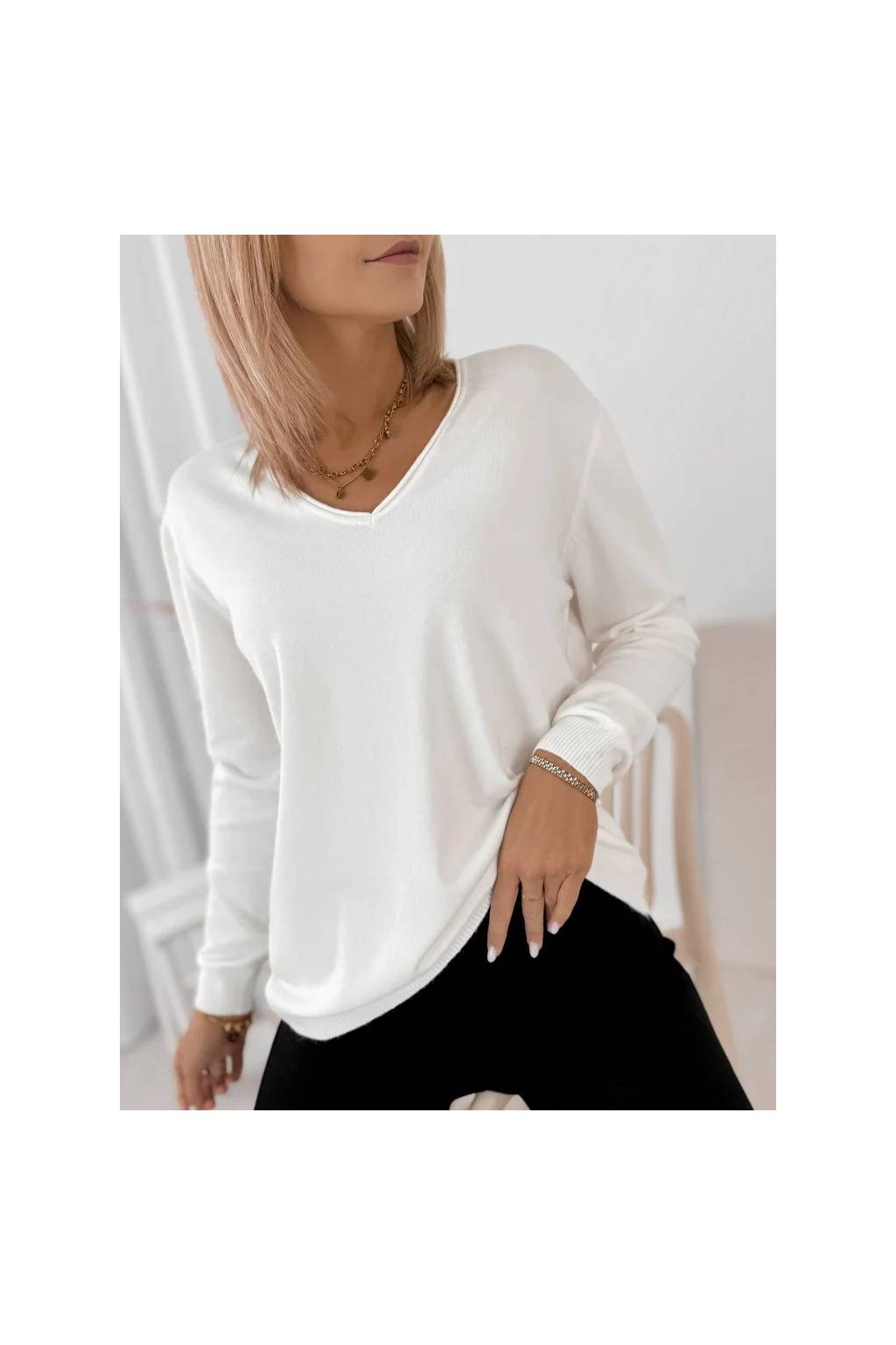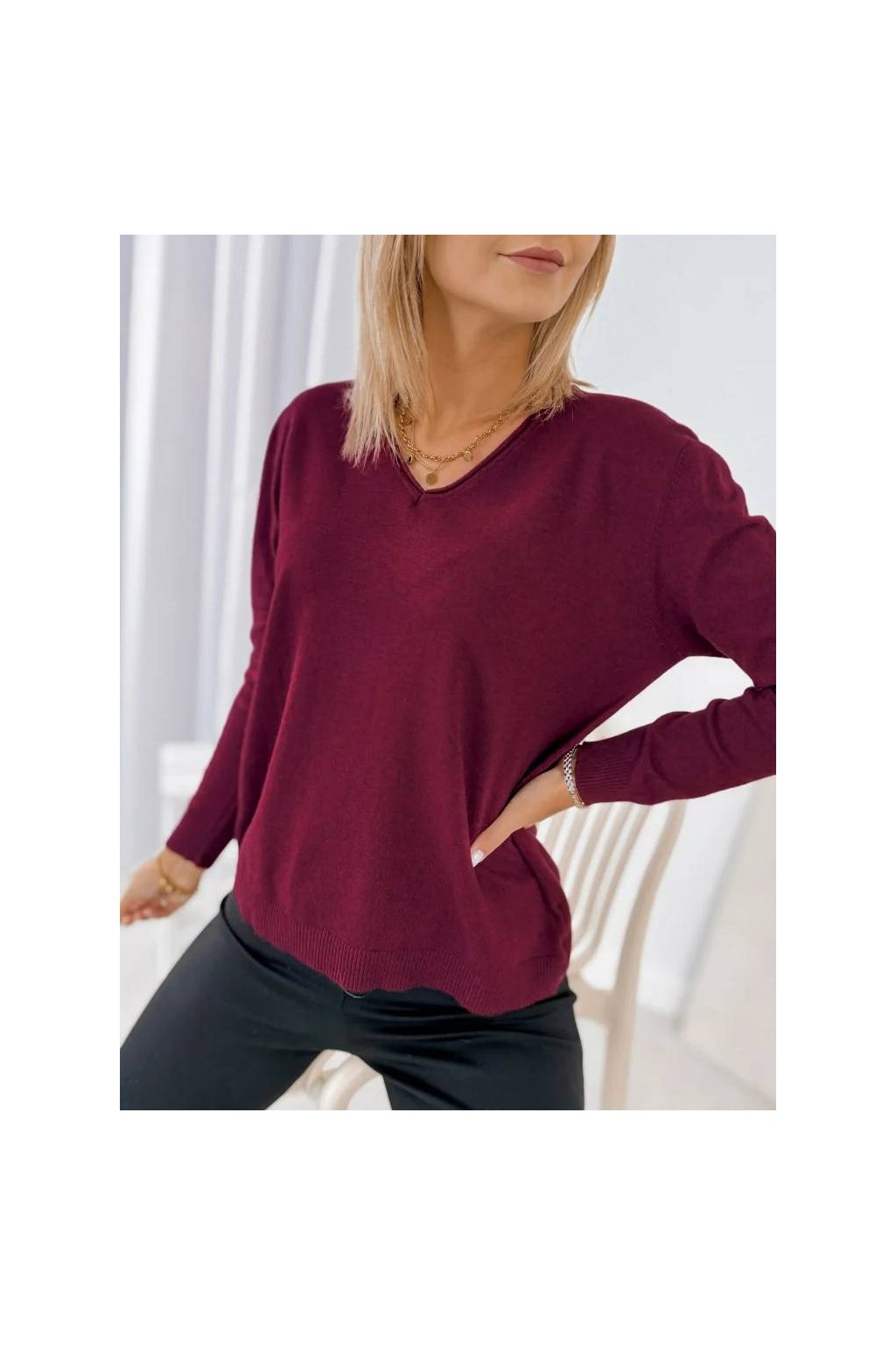 Elegantní dámský svetr s výstřihem do „V“ je perfektní volbou pro každodenní i elegantnější outfity.