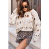 Dámský prolamovaný děrovaný lehký svetr. Svetr velikosti oversize je ideální volbou pro mnoho neformálních outfitů. Model se zaobleným výstřihem má stahovací gumu v rukávech a sníženou linii ramen pro uvolněný vzhled. Dámský prolamovaný děrovaný lehký svetr
