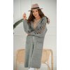 Dlouhý kardigan z kvalitní látky s příměsí vlny je základem šatníku každé ženy, která si potrpí na skvělý vzhled, ale také na pohodlí. Model má dlouhé rukávy s módními dírami s jemným žebrováním na jejich koncích. Další výhodou jsou kapsy na přední straně po obou stranách a kapuci. K dostání v mnoha barevných provedeních. Projekt by FASHIONWEEK!