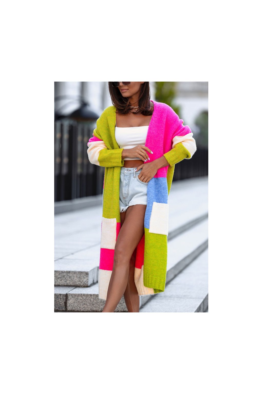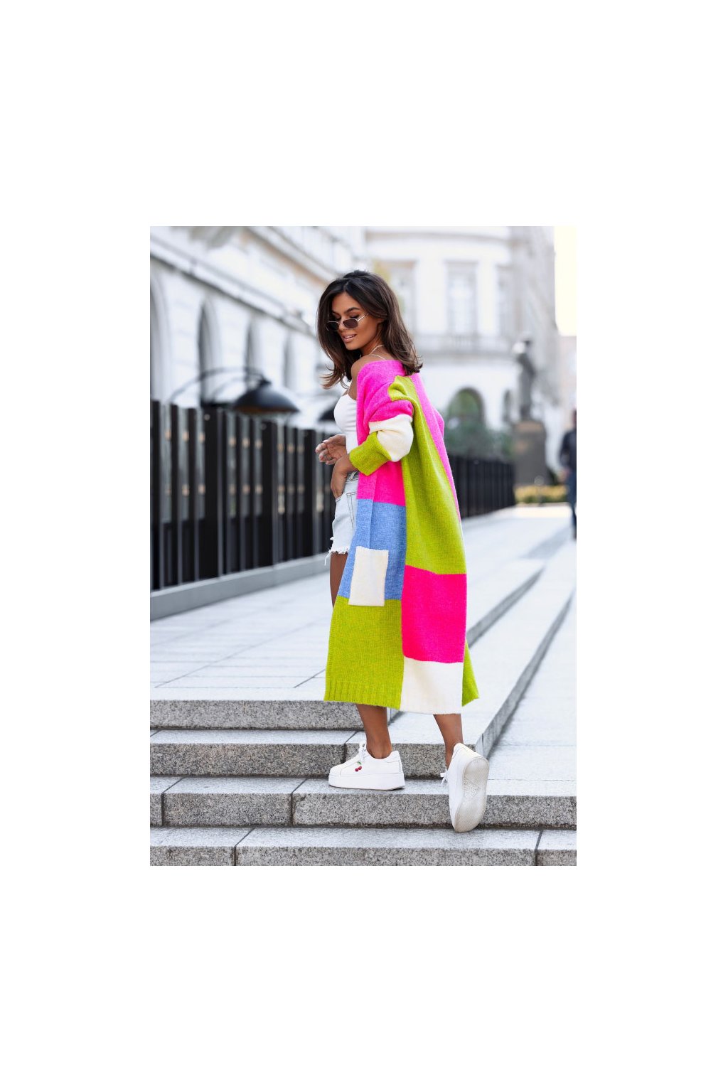 Dlouhý oversize kardigan s příměsí vlny. Asymetrické zbarvení mu dodává svěží a dívčí vzhled. Má kapsy na přední straně a stahovací gumu v rukávech a spodní části. Projekt by FASHIONWEEK MARTI&SIMON