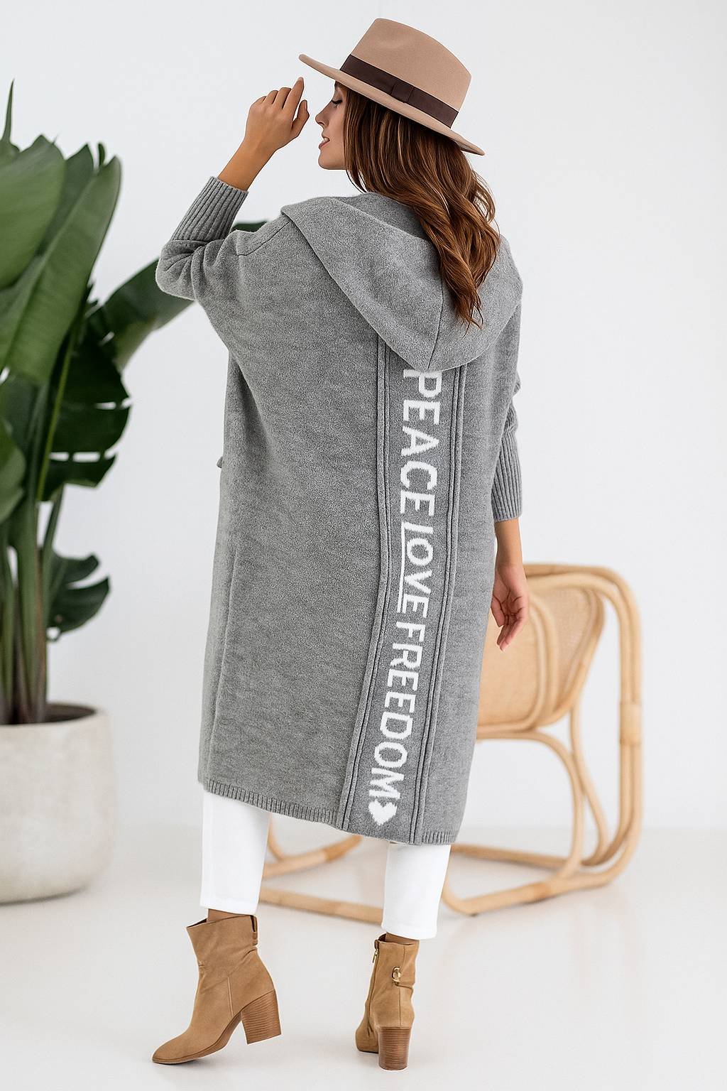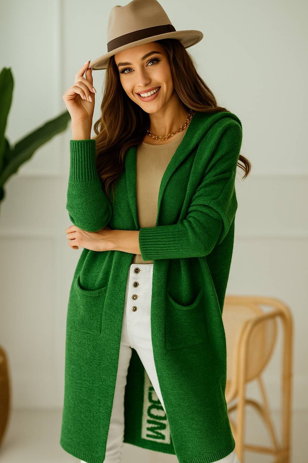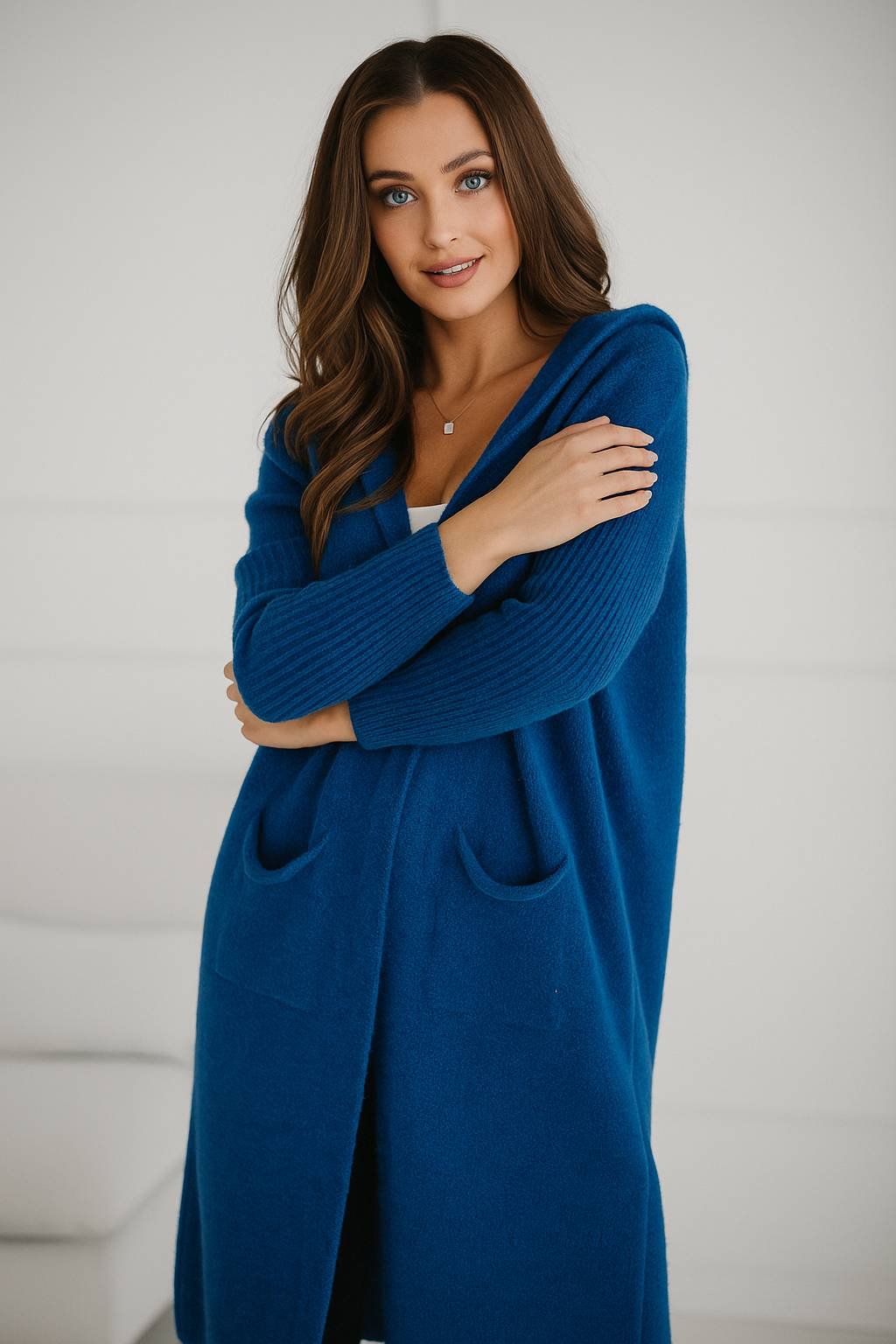 Dlouhý kardigan z kvalitní látky s příměsí vlny je základem šatníku každé ženy, která si potrpí na skvělý vzhled, ale také na pohodlí. Model má dlouhé rukávy s jemným žebrováním na jejich koncích. Další výhodou jsou kapsy na přední straně po obou stranách. K dostání v mnoha barevných provedeních. Projekt by FASHIONWEEK-MODA!