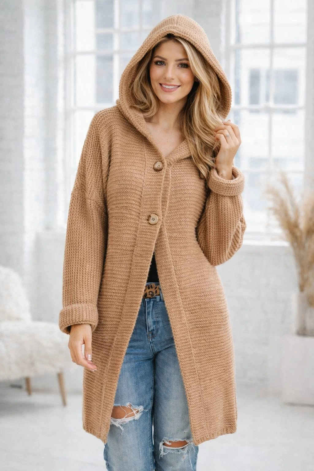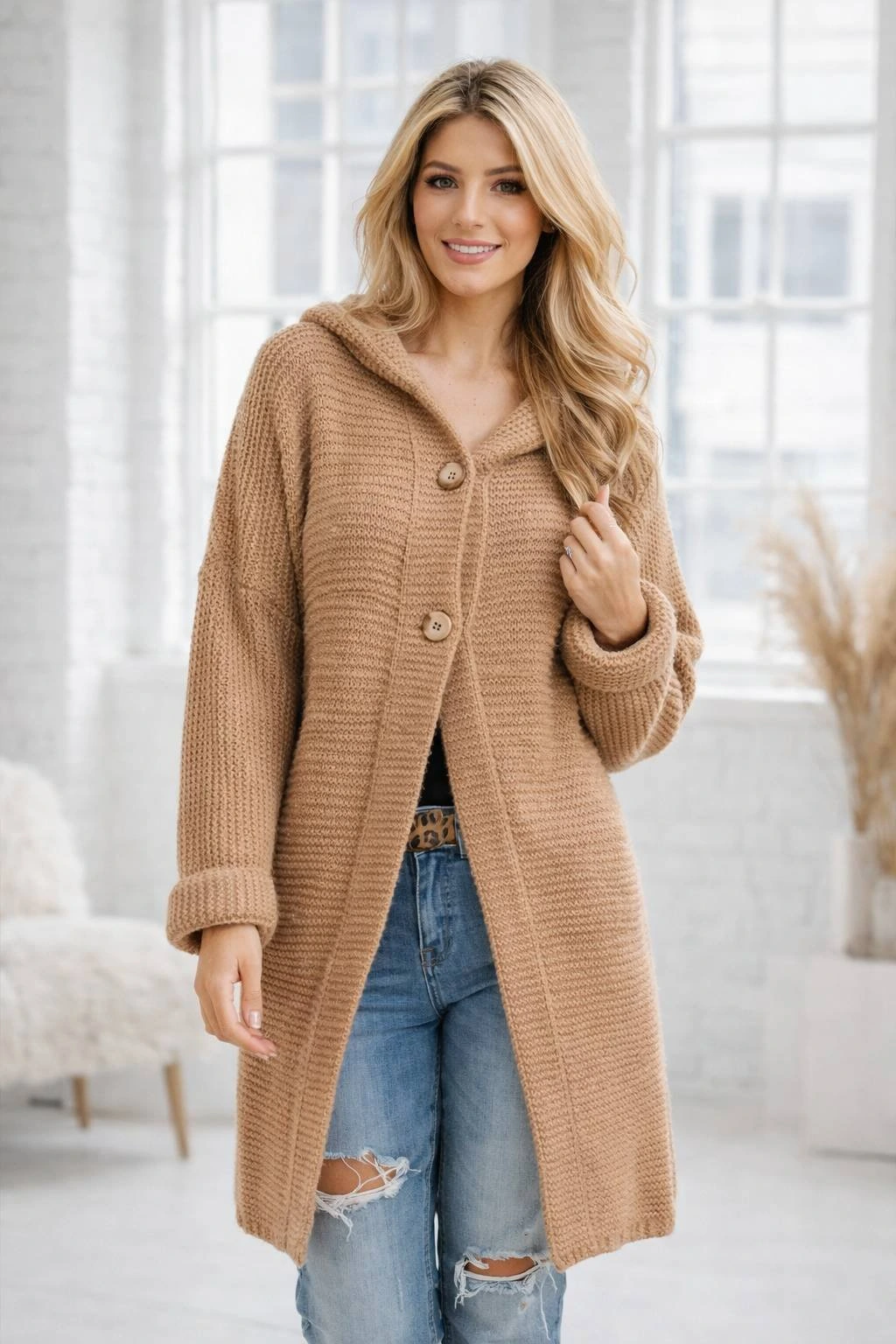 Hledáte stylový kardigan, který spojuje pohodlí, městský styl a přírodní materiály?