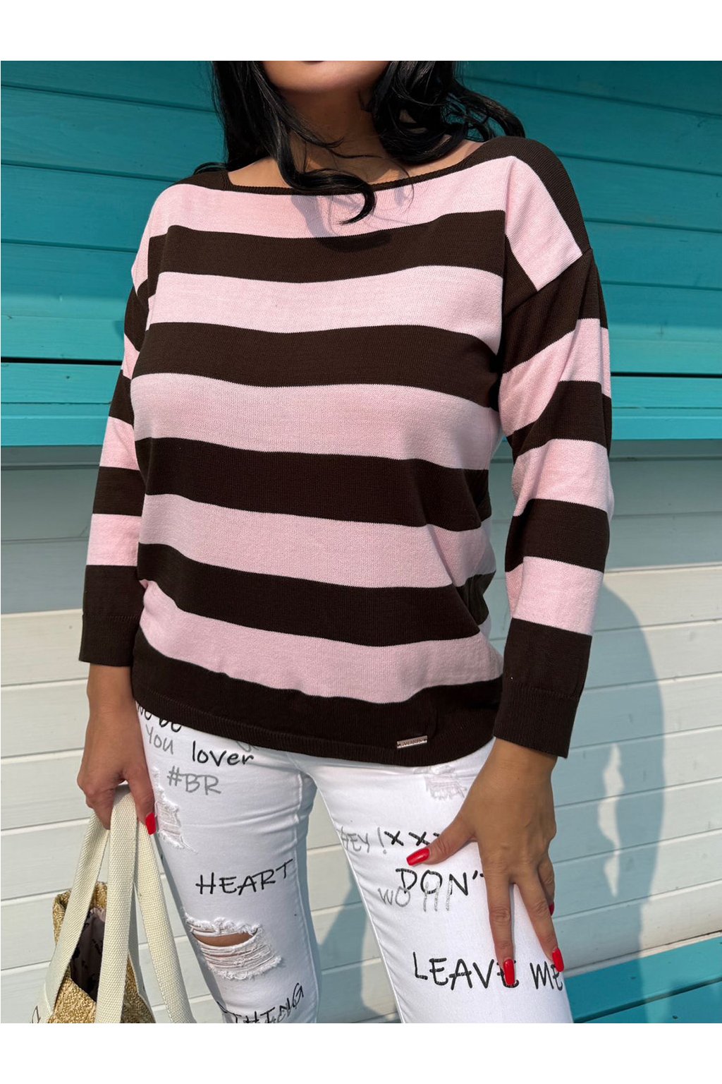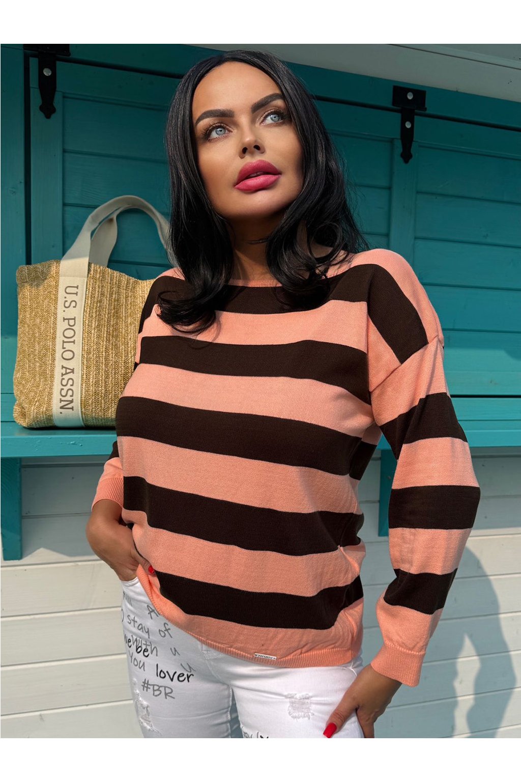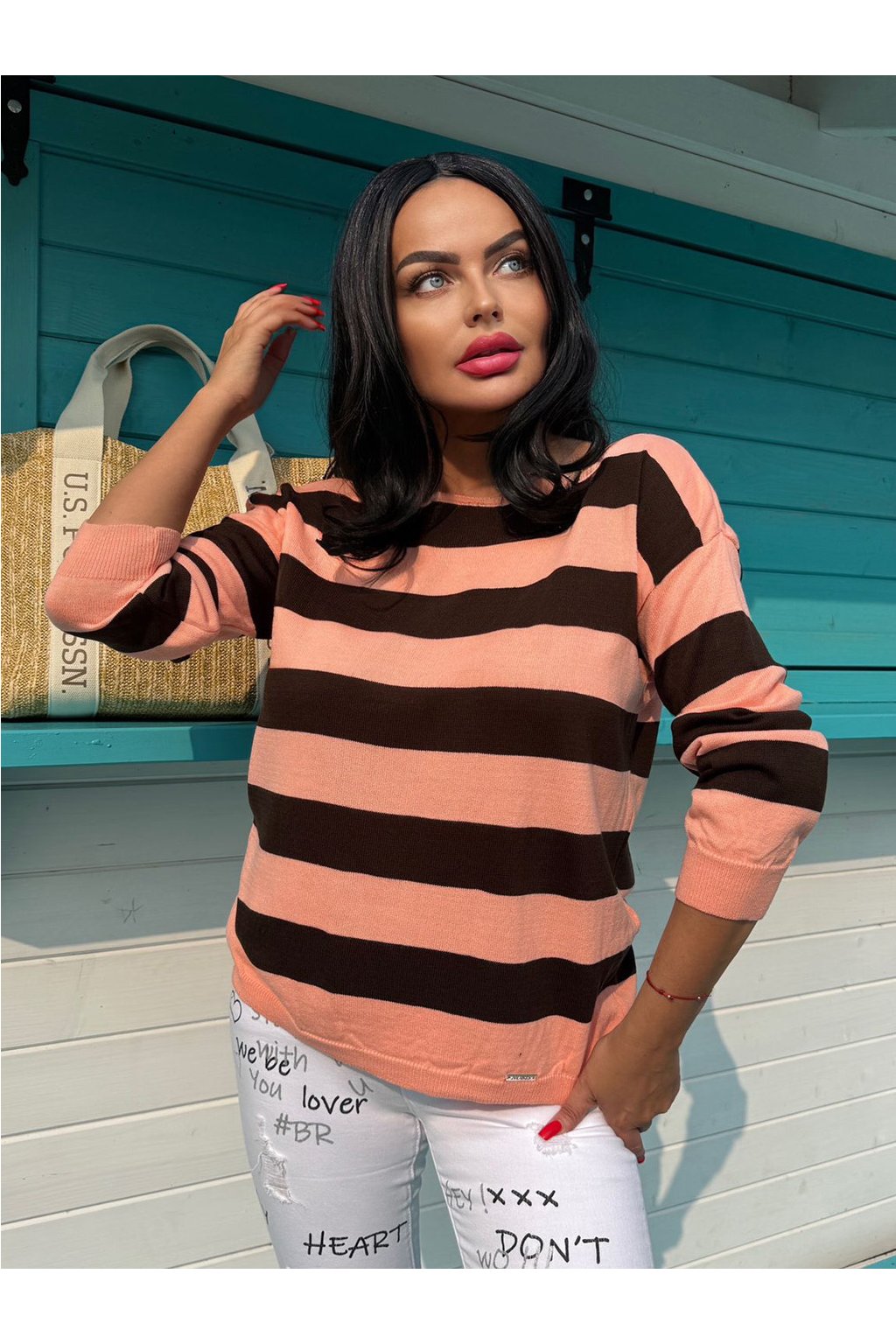 Měkký svetr s ozdobnými pruhy je ideální pro každodenní nošení. Tento model má klasický střih s kulatým výstřihem a dlouhými rukávy, které jsou stejně jako spodek zakončeny stahovací gumou. Pokud dbáte na pěkný vzhled a chcete vypadat SEXY, tak tento originální neobvyklý svetr je to pravé. Svetr velikosti oversize s delším střihem je ideální volbou pro mnoho neformálních outfitů.