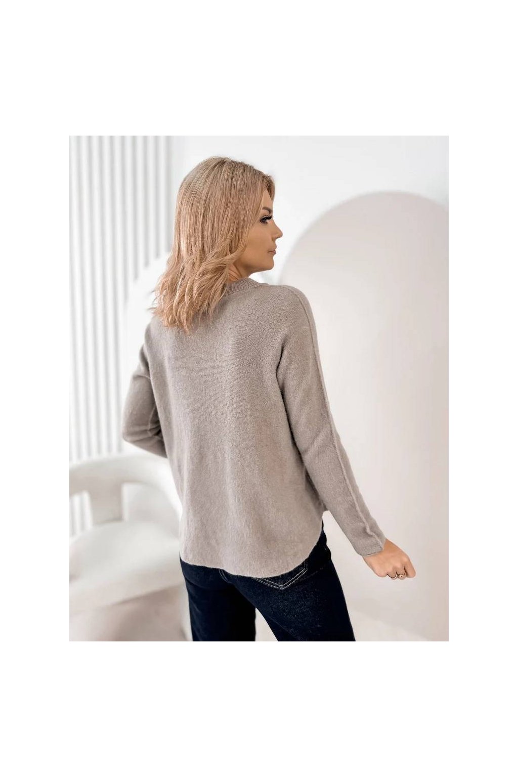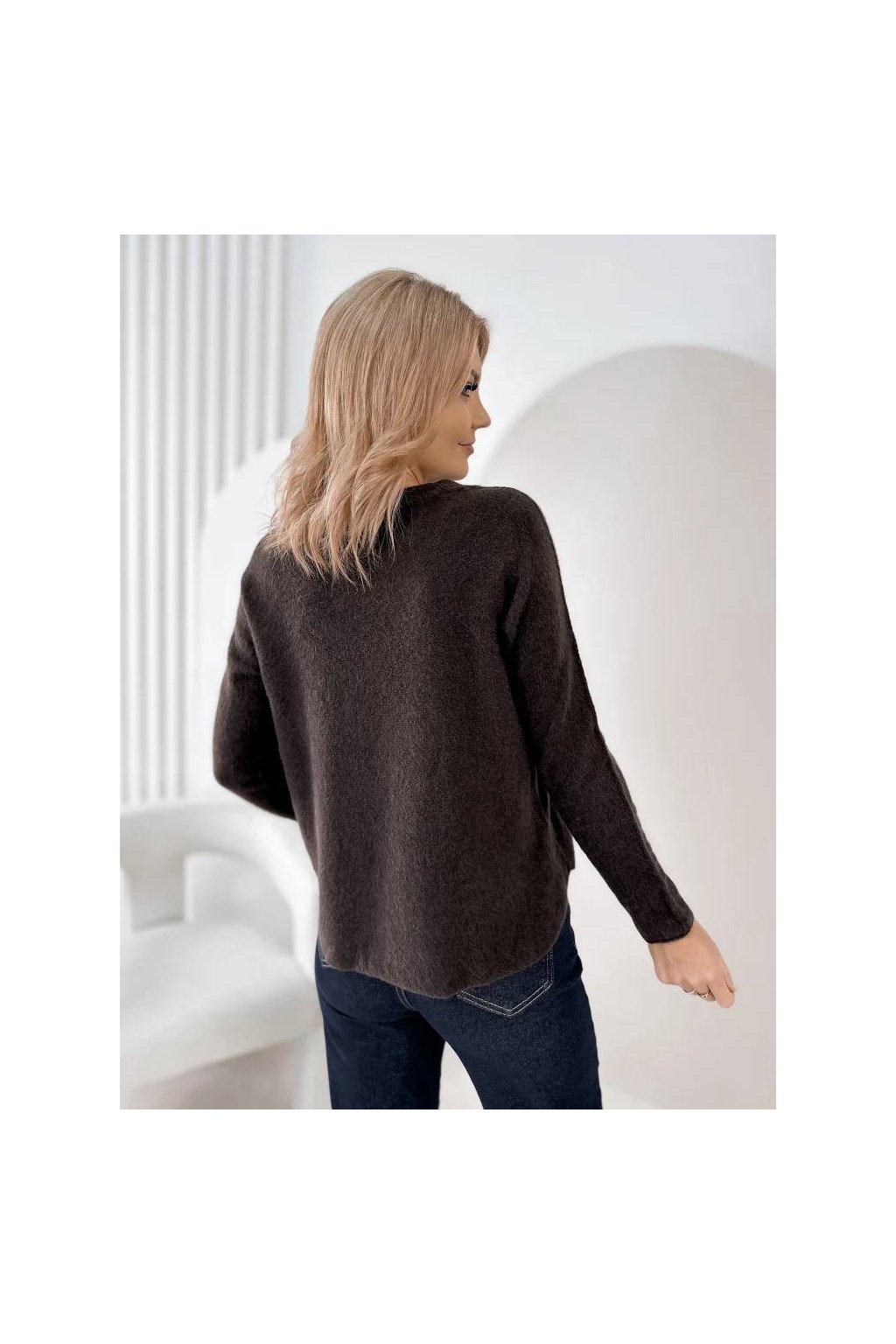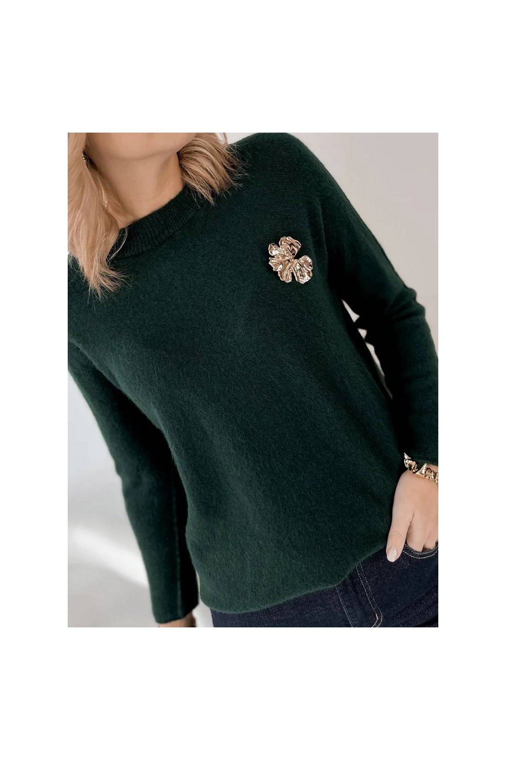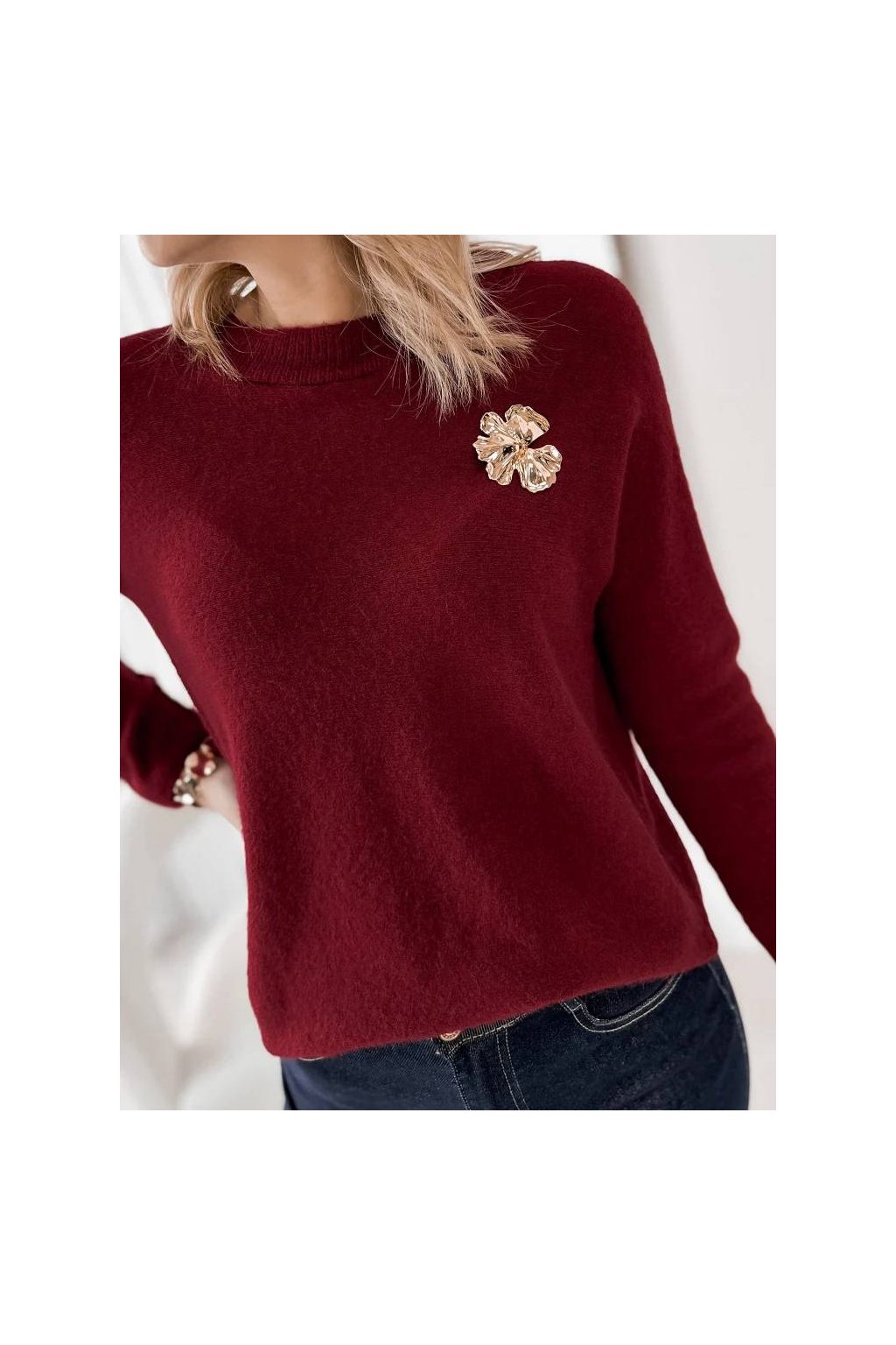 Elegantní dámský svetr s jemnou strukturou je ideální volbou pro každodenní nošení i elegantnější příležitosti. Volný střih krásně splývá na postavě a poskytuje maximální pohodlí. Ozdobná brož dodává svetru ženský a luxusní charakter, díky kterému se stane výrazným prvkem outfitu.