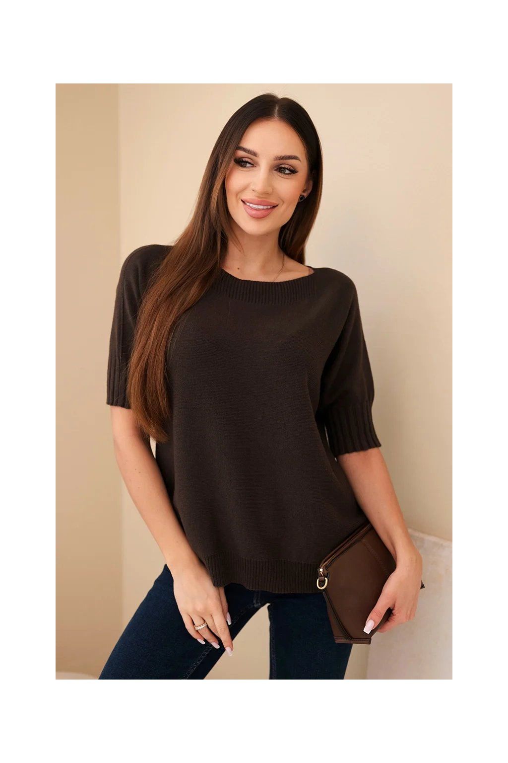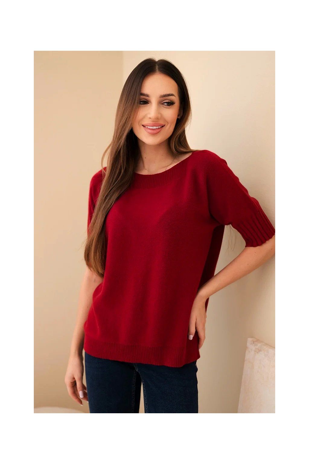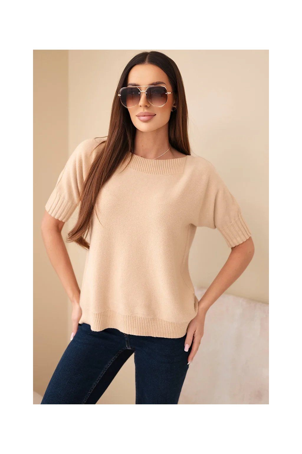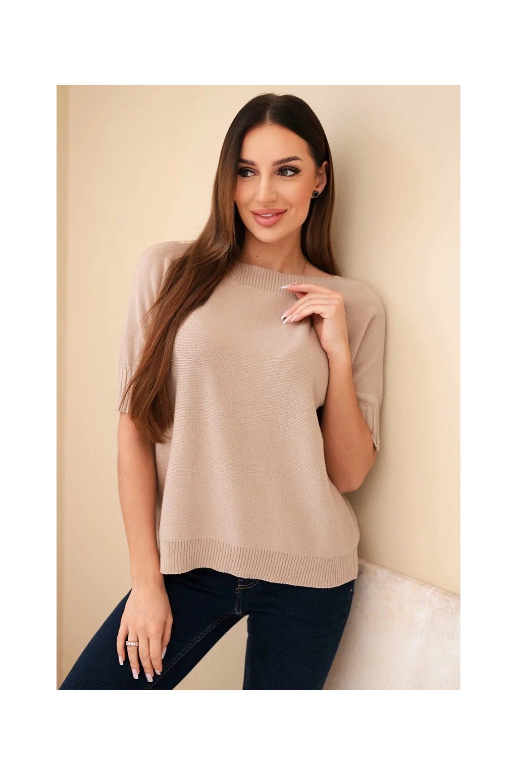 Dámský oversize svetr z viskózy s krátkým rukávem je ideální volbou pro ženy, které si cení pohodlí a módního designu. Vyroben z vysoce kvalitní pleteniny s přídavkem vlny, zajišťuje komfort a příjemné teplo, a volný oversize střih dokonale zakrývá nedostatky postavy.