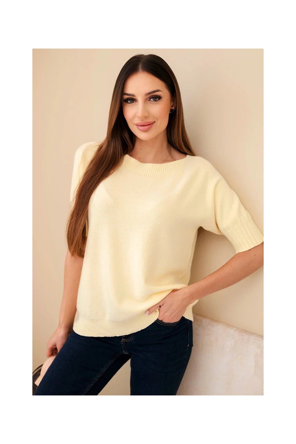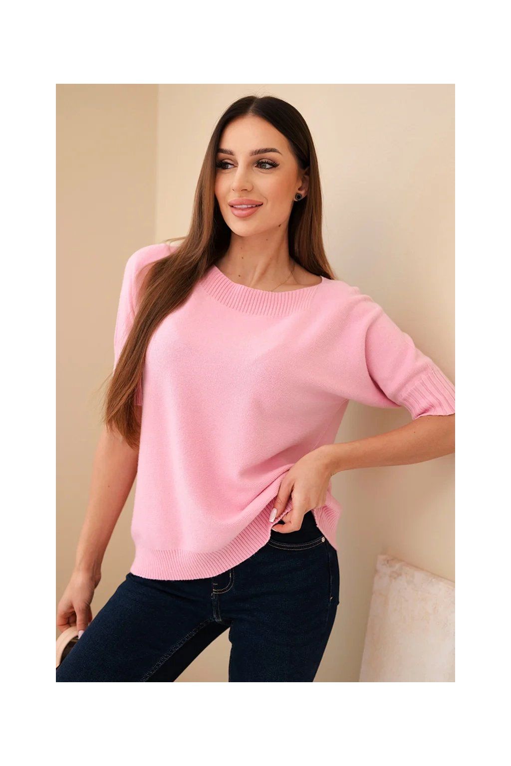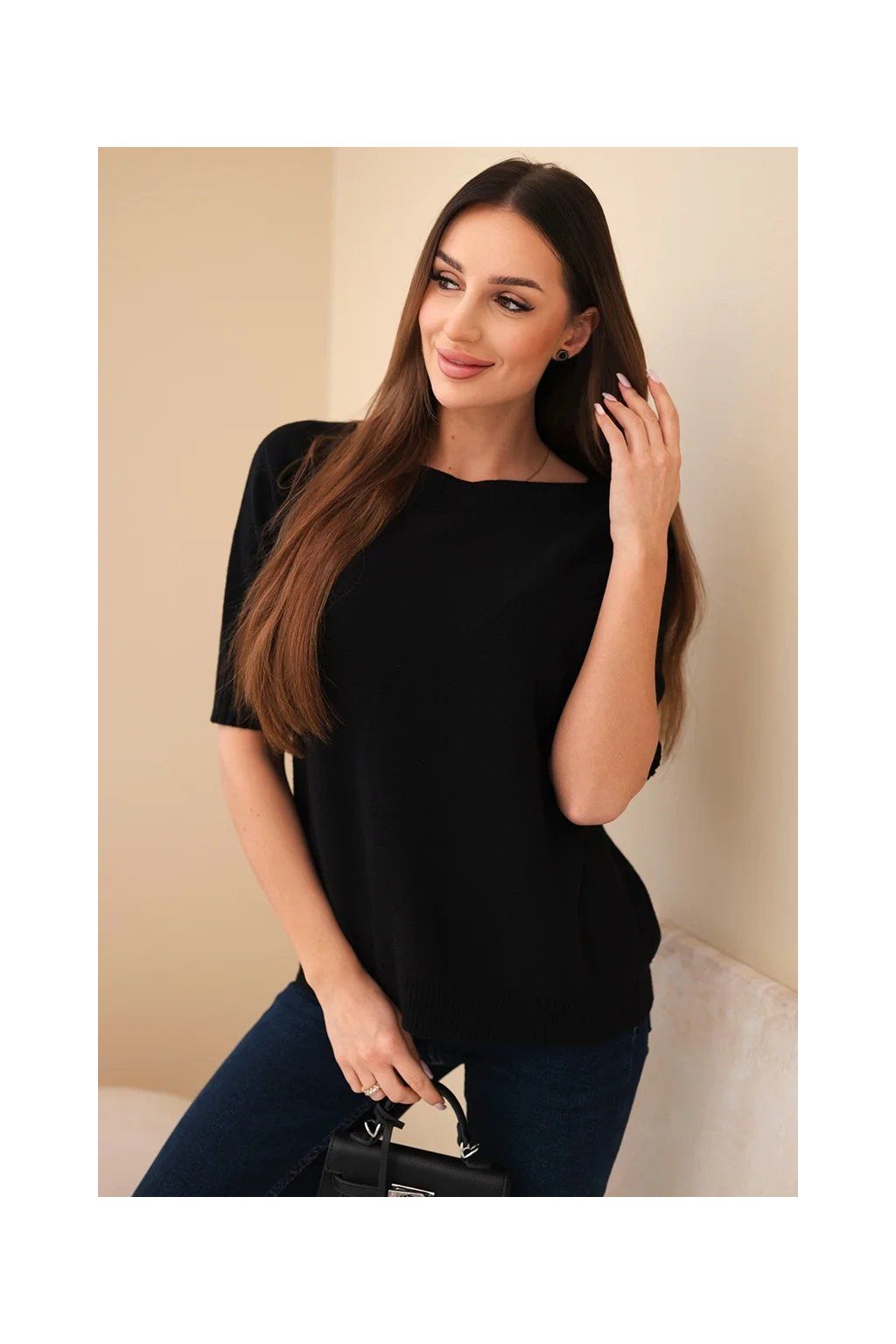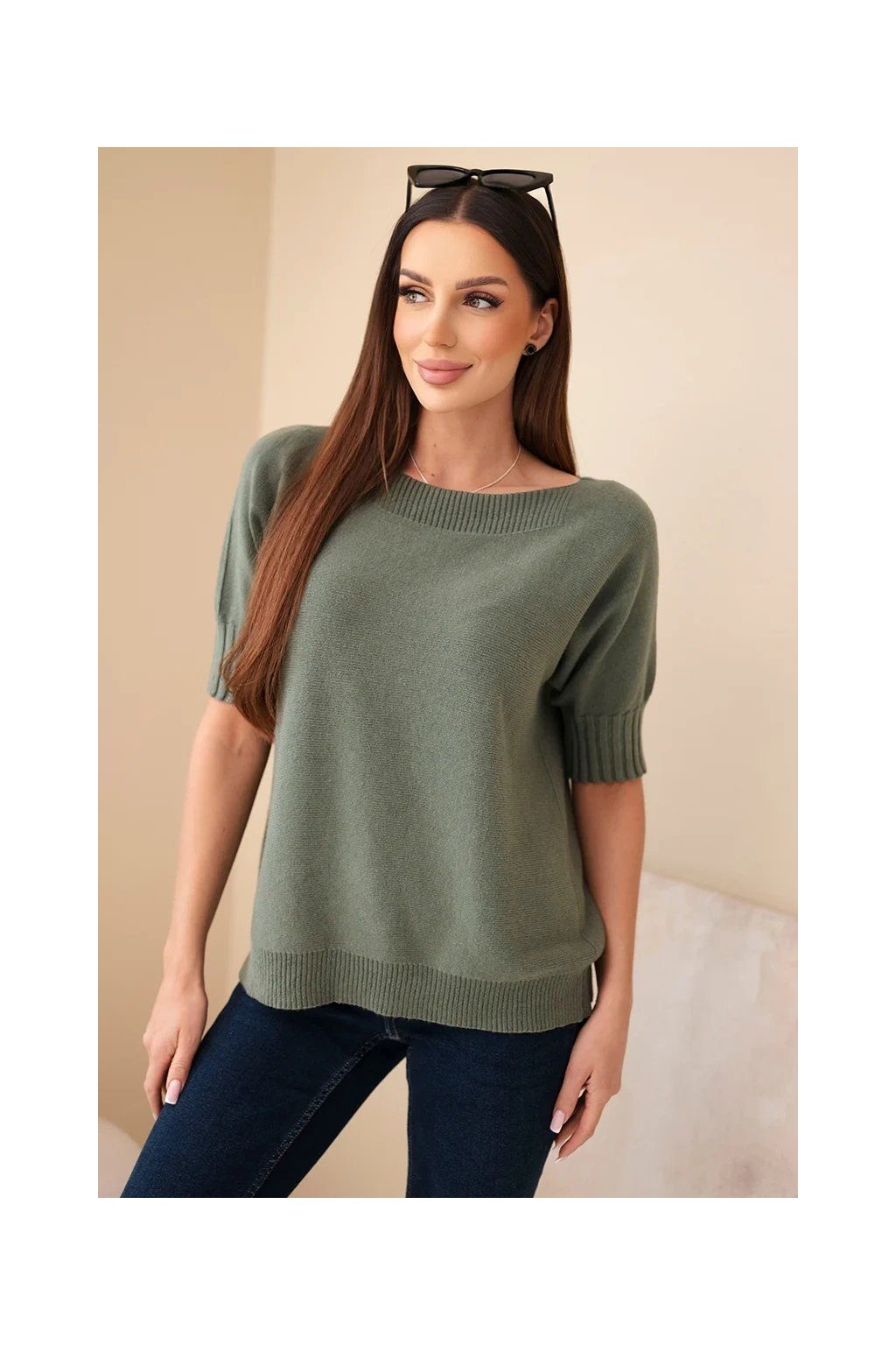 Dámský oversize svetr z viskózy s krátkým rukávem je ideální volbou pro ženy, které si cení pohodlí a módního designu. Vyroben z vysoce kvalitní pleteniny s přídavkem vlny, zajišťuje komfort a příjemné teplo, a volný oversize střih dokonale zakrývá nedostatky postavy.